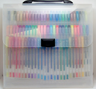 A set of 81 Gel Writer gel pens. Most of these pens are glitter. Again I bought these and found that I don't use glitter pens that often so wanted to find them a better home. I have had them for awhile and have stored them tips up. I tried them all and while they all worked, I noticed that the ink in several had drifted away from the tip. I'll store them for the next month with tips down and see if that gets the ink back where it should be. If not, I'll offer a comparable giveaway of $20 in value...not sure what that will be yet so you'll have to take what you may get for this one. :)